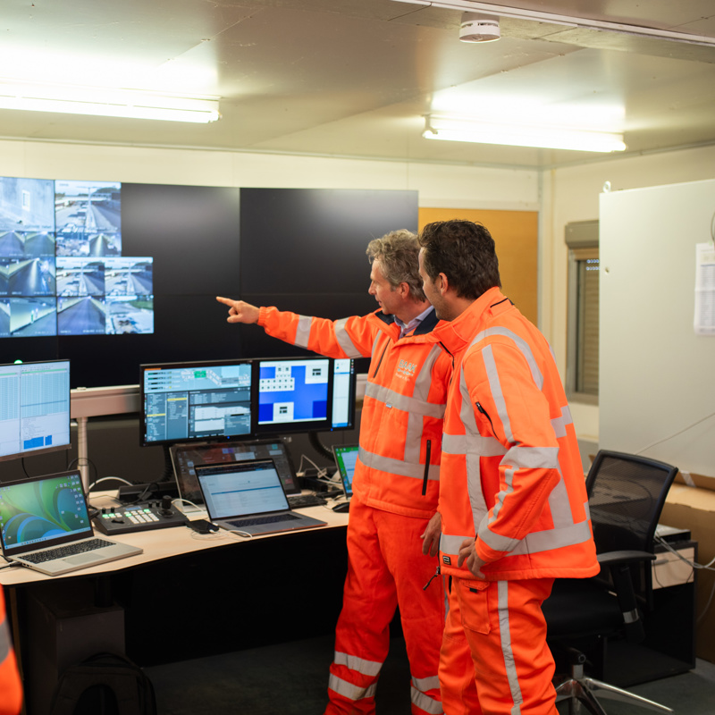 “Er zitten bijvoorbeeld pompinstallaties in om regenwater af te voeren, ventilatiesystemen, noodtelefoons, luidsprekers, camera’s en een centrale bediendesk van Rijkswaterstaat. Alles om het verkeer door de tunnel zo veilig mogelijk te maken. We zijn al die installaties nu uitgebreid aan het testen. En wat we hier leren, kunnen we weer gebruiken voor de tweede tunnel in dit project, de Maasdeltatunnel.”